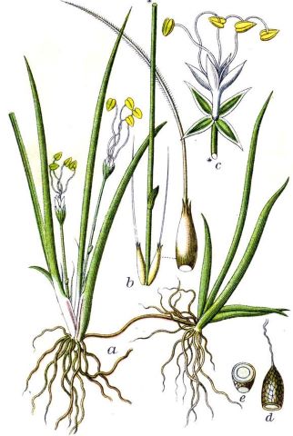 - Blätter: schmal-lineal, grasartig, kahl, in grundständiger Rosette stehend;